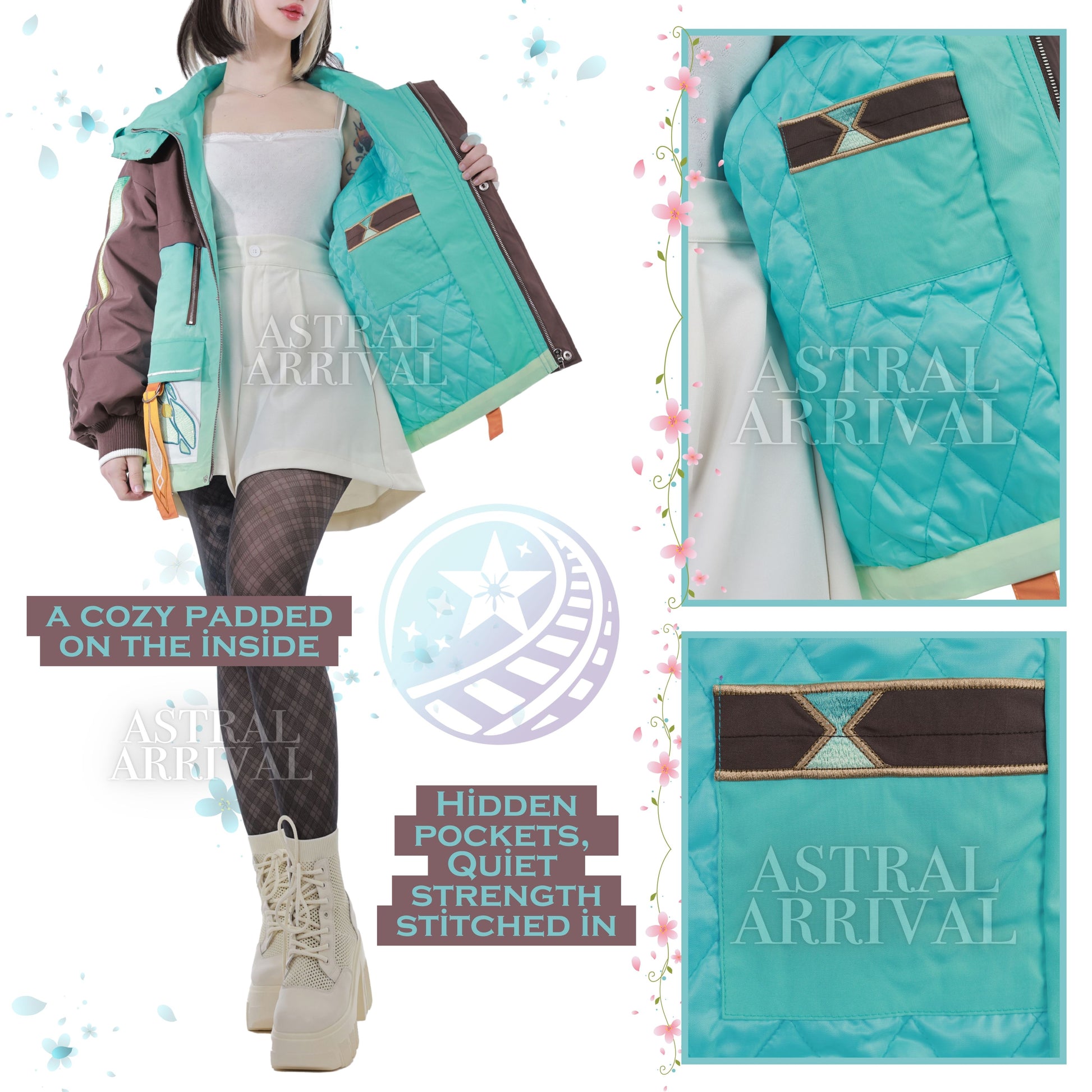 This jacket is part of a limited edition collection featuring special designs that take countless hours to produce and subtly represent your favorite character in a way that will make your positively stand out. Each jacket features carefully designed art pieces on the sleeves, body and pockets that will not wash out as they are made from a beautifully crafted combination of embroider and appliqué rather than just printed on the surface. Some elements of the jackets in this collection feature custom dyed fabric to create beautiful gradients. The sleeves and pockets also feature our special embroidery that takes countless hours to create and makes this item a true piece of luxury. The design is subtle enough so that you can comfortably wear it in public without being noticed as fan merch and yet it is bold enough to be positively recognized by fellow fans.